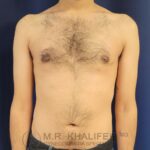Grade III gynecomastia with feminine appearance and mild skin excess. This patient was treated via mild liposuction followed by removal of the gland thru the areola.