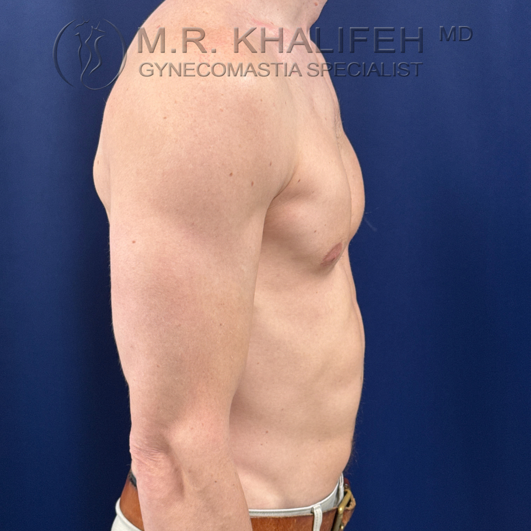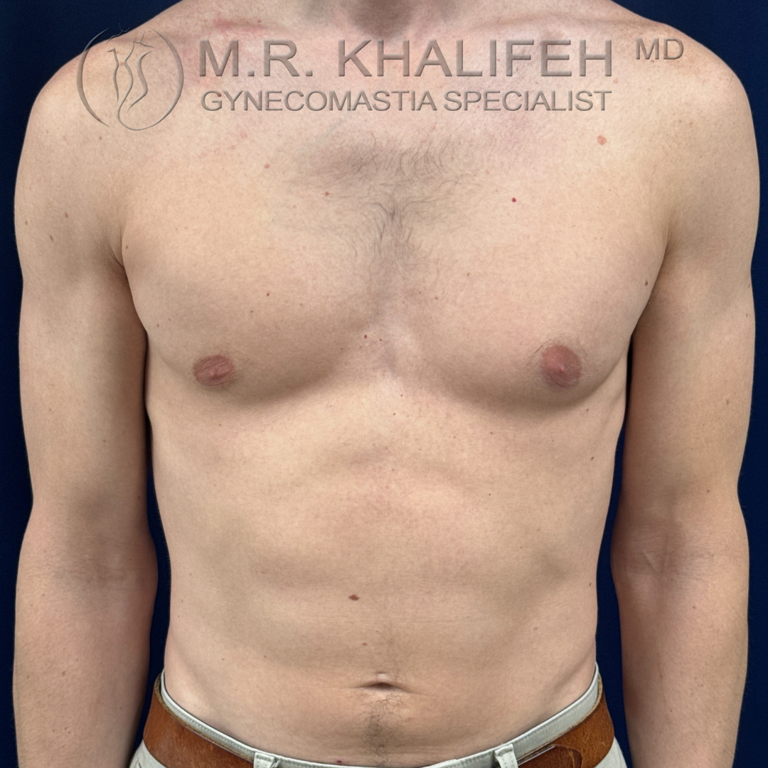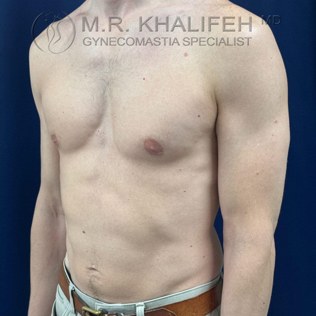 Mild puffy nipples, mild skin laxity, in a muscular man. treated with excision around the areola. Results are seen at 3 months